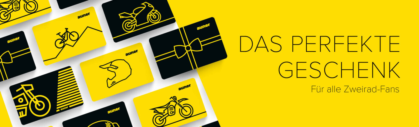 Ein auner-Gutschein ist das perfekte Geschenk für alle Zweirad-Fans. Verschenken Sie ihn als klassische Gutscheinkarte oder kreativ verpackt in der Geschenkdose inklusive einer kleinen, süßen Überraschung. Das Besondere: Sowohl die Karte als auch die Dose können Sie mit vorgefertigten Motiven personalisieren und so das Geschenk perfekt auf den Beschenkten abstimmen.
