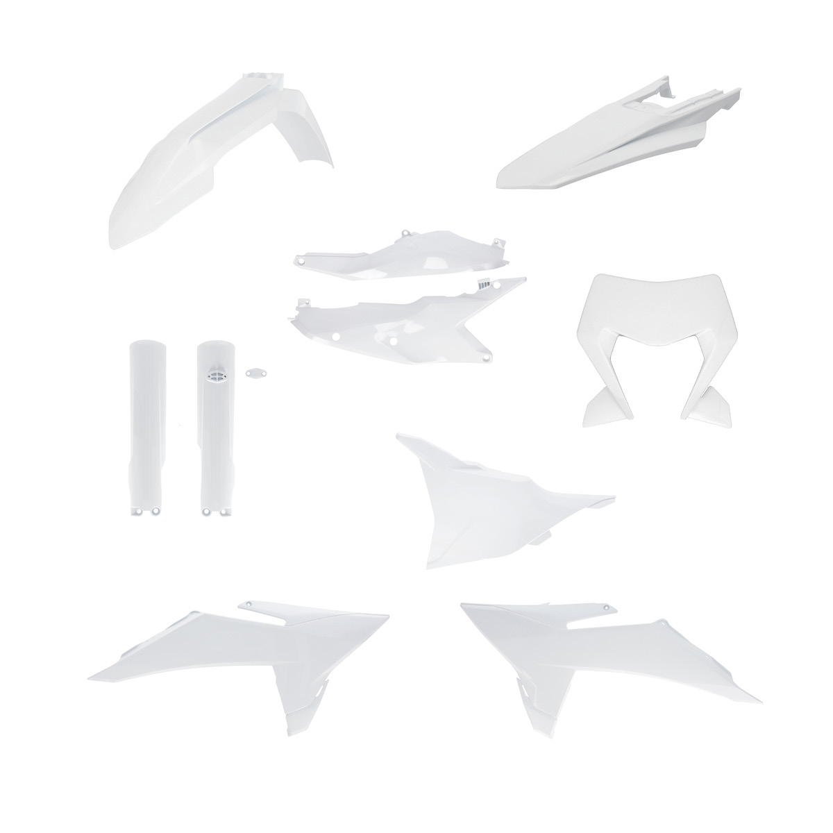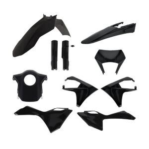 Die ACERBIS Kunststoff-Kits zeichnen sich durch eine optimale Passform an den Original Befestigungspunkten aus. Dazu ist der Kunststoff qualitativ hochwertig, farblich dauerhaft und äußerst strapazierfähig, auch bei extremen Außentemperaturen. Zum Lieferumfang gehören: 1x Vorderer Kotflügel, 1x Hinterer Kotflügel, 1x Startnummernschild, 1x Luftfilterkastenabdeckung, je 1 Gabelprotektor links und rechts, je 1 Kühlerspoiler links und rechts, je 1 Seitenverkleidung links und rechts. Die Kunststoff-Teile haben die Originalform des entsprechenden Modells und Baujahres.