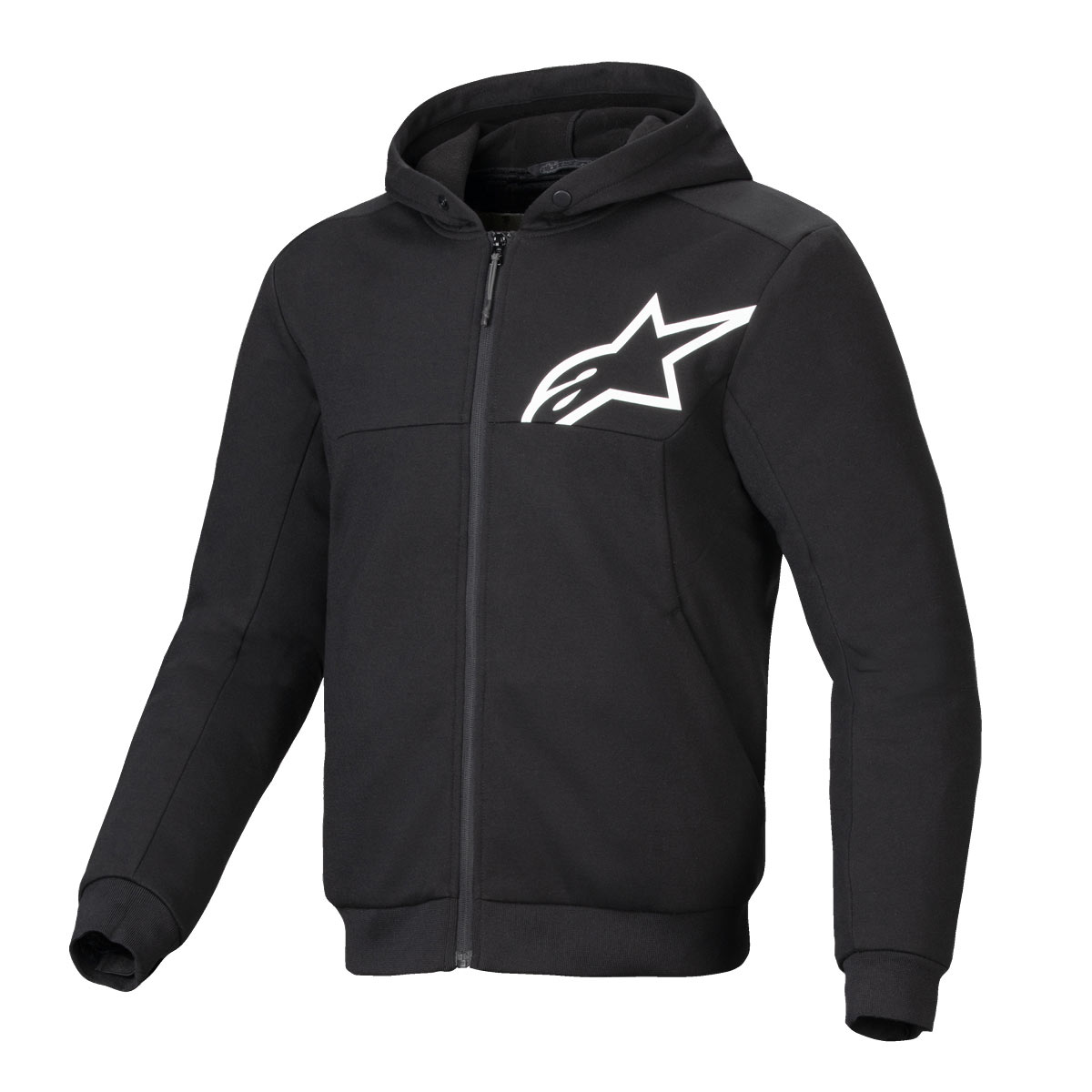 Der sportliche Hoodie von Alpinestars ist mit einer Kapuze, welche hinten einen Schnappverschluss hat, ausgestattet. Das Tech-Fleece Material mit einer optimalen Mischung aus Haltbarkeit, Komfort und geringen Gewicht trägt zu einem hohen Tragekomfort bei. Ebenso ist der Chrome V2 Hoodie mit Aramid Verstärkungen an Ellbogen und Schultern ausgestattet, um einen effektiven Schutz vor Abrieb zu bieten. Kleine Wertgegenstände können in den zwei Seitentaschen mit Reisverschluss verstaut werden. CE zertifiziert Klasse A.