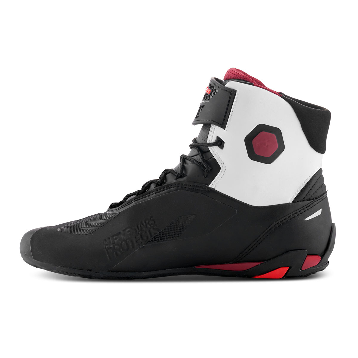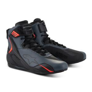Der Faster-4 von Alpinestars verfügt über neue Leistungsinnovationen, die auf jahrzehntelangen Forschungs- und Entwicklungserfahrungen auf höchstem Niveau des Motorsports basieren. Er ist leicht und verfügt über erstklassige Schutzfunktionen sowohl innen als auch außen. Das Obermaterial besteht aus extrem leichten, widerstandsfähigen und abriebfesten Mikrofaser. Der Verstärkter TPU-Knöchel, der im unteren Seitenbereich verlängert wird, erhöht die Unterstützung und den Schutz. Die seitlichen TPR-Schleiferdetails sorgen für mehr Flexibilität und Schutz. Das TPR-Fersenkappen-Design sorgt für zusätzlichen seitlichen Halt und Sicherheit. Für eine einfache, sichere und bequeme Passform sorgt das traditionelles Schnürsystem. Dank des seitlich verstellbaren Klettverschlusssystems mit TPR-Riemen sitzt der Schuh immer Passgenau. Durch die Laschen- und Kragenpolsterung bietet der Alpinestars Schuh einen hohen Komfort und eine hervorragende Passform um den Knöchel und den Rist. Die Fersenkappenverstärkung ist für ein ergonomischeres Design unter dem Obermaterial angeordnet. Ein 3D-Mesh-Futter trägt für hohe Atmungsaktivität bei, während das Micro-Wildleder an der Ferse rutschfest ist. Die extrem leichte, speziell zusammengesetzte Gummisohle bietet strukturierten Halt, hervorragende Dämpfung und einen integrierten Stützschaft für erhöhte Sohlensteifigkeit. CE geprüft EN13634:2017.