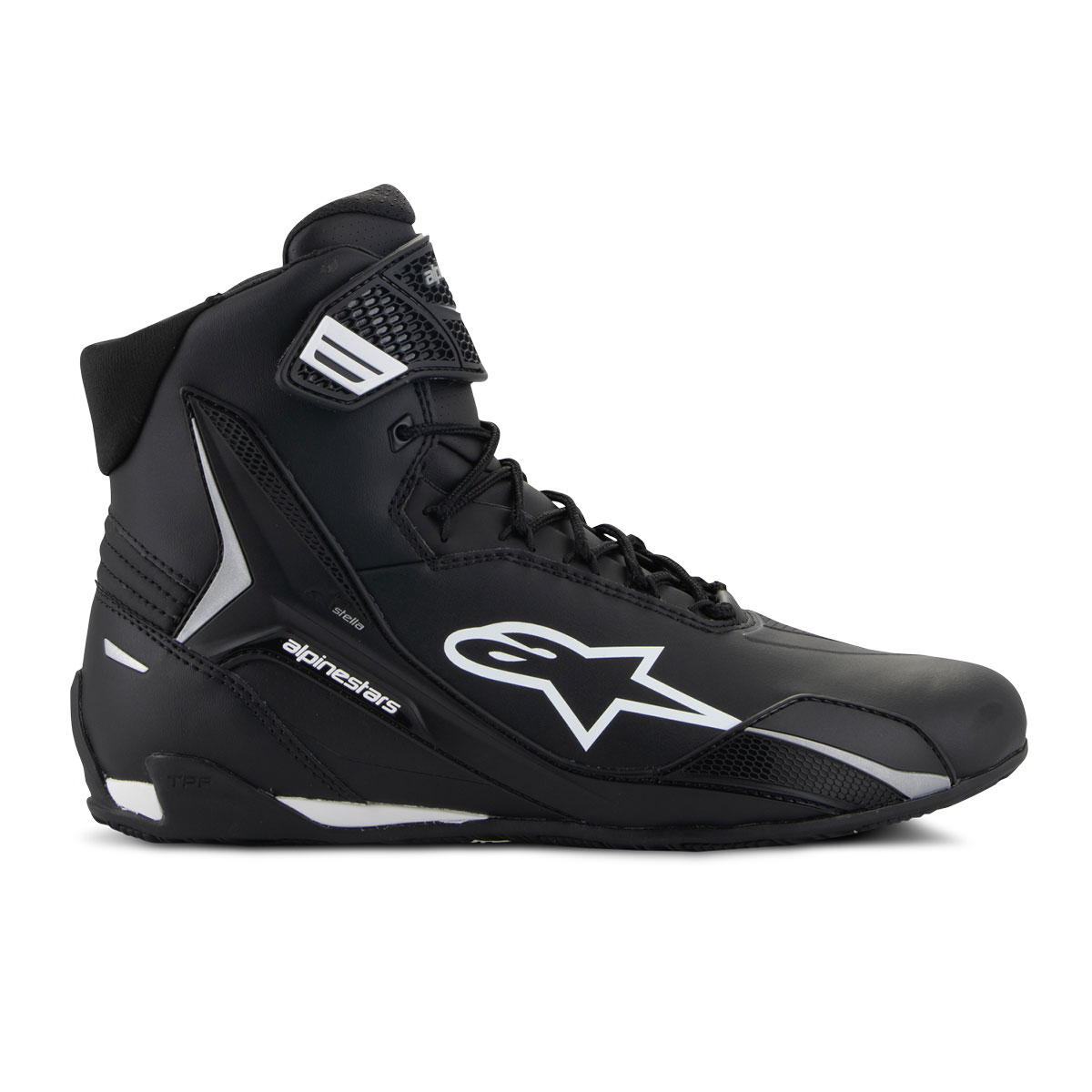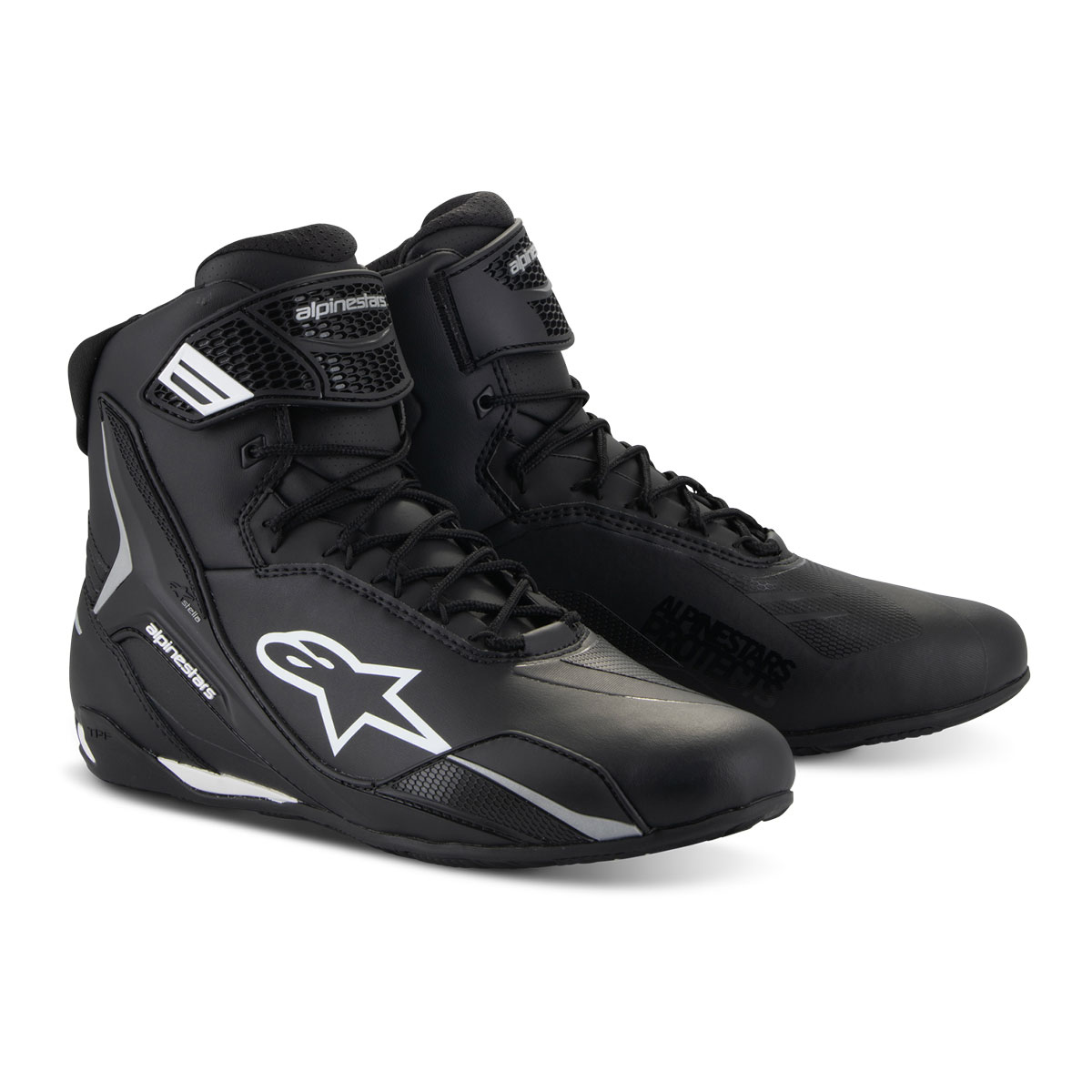 Der Faster-4 von Alpinestars verfügt über neue Leistungsinnovationen, die auf jahrzehntelangen Forschungs- und Entwicklungserfahrungen auf höchstem Niveau des Motorsports basieren. Er ist leicht und verfügt über erstklassige Schutzfunktionen sowohl innen als auch außen. Das Obermaterial besteht aus extrem leichten, widerstandsfähigen und abriebfesten Mikrofaser. Der Verstärkter TPU-Knöchel, der im unteren Seitenbereich verlängert wird, erhöht die Unterstützung und den Schutz. Die seitlichen TPR-Schleiferdetails sorgen für mehr Flexibilität und Schutz. Das TPR-Fersenkappen-Design sorgt für zusätzlichen seitlichen Halt und Sicherheit. Für eine einfache, sichere und bequeme Passform sorgt das traditionelles Schnürsystem. Dank des seitlich verstellbaren Klettverschlusssystems mit TPR-Riemen sitzt der Schuh immer Passgenau. Durch die Laschen- und Kragenpolsterung bietet der Alpinestars Schuh einen hohen Komfort und eine hervorragende Passform um den Knöchel und den Rist. Die Fersenkappenverstärkung ist für ein ergonomischeres Design unter dem Obermaterial angeordnet. Ein 3D-Mesh-Futter trägt für hohe Atmungsaktivität bei, während das Micro-Wildleder an der Ferse rutschfest ist. Die extrem leichte, speziell zusammengesetzte Gummisohle bietet strukturierten Halt, hervorragende Dämpfung und einen integrierten Stützschaft für erhöhte Sohlensteifigkeit. CE geprüft EN13634:2017.