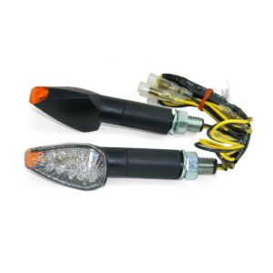 BIKE IT LED-Mini-Blinker FORCE, schwarzes Gehäuse, kurzer Stiel, Pfeilspitzenform, Blinker leuchtet vorne, seitlich und hinten, EU-Prüfzeichen. Lieferumfang: Paar inkl. Birne und Kabel.