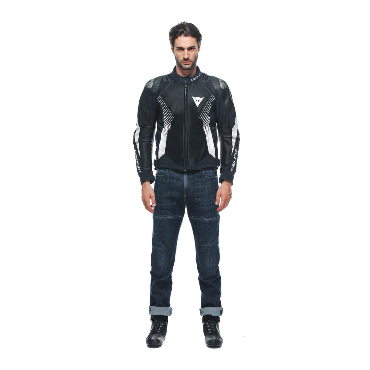Mit dem Dry-Fit und der sportlichen Passform bietet die Super Rider 2 Absøluteshell™ Motorradjacke zusätzlich Einsätze aus Rindsleder an den am stärksten beanspruchten Stellen. Sie passt sich dank der Konstruktion aus elastischem Mugello-Gewebe, die ein hohes Maß an Ergonomie und Bewegungsfreiheit garantiert, an verschiedene Körperformen an. Das hohe Niveau des zertifizierten Schutzes beruht auf dem direkten Erlebnis auf der Rennstrecke und wird durch Aluminiumeinsätze an den Schultern in Kombination mit den Verbundprotektoren gewährleistet, die durch Brust- und Rückenprotektoren ergänzt werden können. Dank des aerodynamischen Höckers wird der Schutz auch bei hohen Geschwindigkeiten mit Komfort und Fahrstabilität verbunden. Das atmungsaktive Futter wird mit der herausnehmbaren, wasserfesten Absøluteshell™-Innenmembran kombiniert, wodurch das Kleidungsstück bei unterschiedlichen Wetterbedingungen extrem vielseitig einsetzbar ist – an heißen Tagen sorgt es für maximale Belüftung und an Schlechtwettertagen bietet es Schutz vor Regen und Wind. Die elastischen Einsätze im Bereich der Schulterblätter verleihen dem Kleidungsstück große Flexibilität und das System zur Passformregulierung an den Hüften, den Handgelenken und dem Bizeps sorgt für hohen Tragekomfort inklusive einer optimalen Tragbarkeit. EN 17092 A zertifiziert