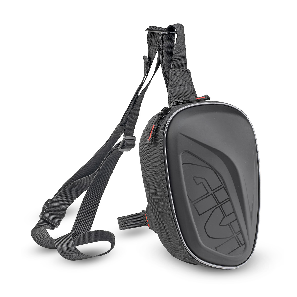 GIVI Beintasche aus 1200D Polyester, EVA thermogeformt, beschichtet mit kratzfestem PU und UV geprüften Materialien. Verstell- und abnehmbaren Hüftgurt und drei Innentaschen. Es besteht die Möglichkeit die Tasche direkt am Gürtel oder an der Hose zu befestigen.