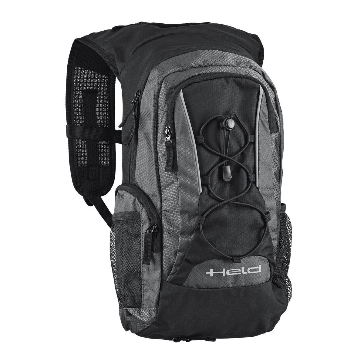 Dieser vielseitige Biker-Rucksack besteht aus robustem Polyester mit wasserabweisender Beschichtung und bietet zuverlässigen Schutz vor Witterungseinflüssen. Zwei Außentaschen und seitliche Netztaschen schaffen übersichtlichen Stauraum für alles, was unterwegs schnell griffbereit sein soll. Das speziell für Motorradfahrer entwickelte Trägersystem mit gepolsterten Schulterriemen, Brustverschluss und Bauchgurt sorgt für stabilen Sitz und hohen Tragekomfort selbst bei längeren Fahrten. Für plötzliche Schauer steht eine integrierte, schnell herausziehbare Regenhaube bereit. Mit einer maximalen Zuladung von 8 kg ist der Held Rucksack To Go 2 ein praktischer, sicherer Begleiter auf jeder Tour.