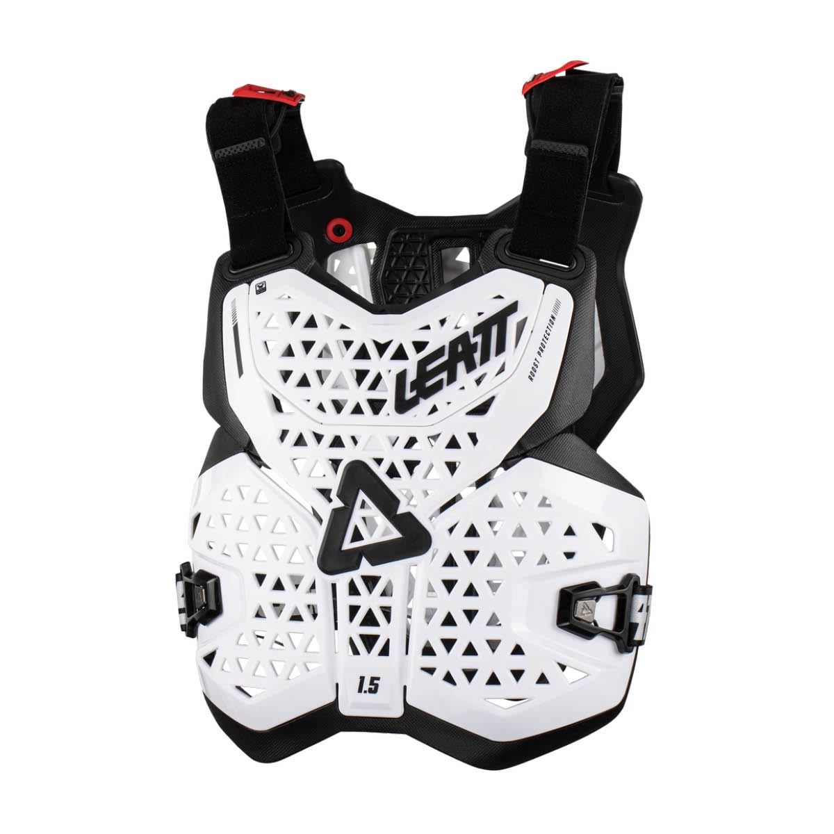 Der LEATT Brustpanzer 1.5 ist ein Hartschalenprotektor, CE zertifiziert und EN14021. Das 3D-Design sorgt für eine angenehme Passform mit gepolsterter Basisschicht. Die enge Passform ermöglicht auch ein Tragen unter dem Trikot. Die vordere und die hintere Platte sind abnehmbar und das BraceOn System ermöglichen die Anpassung über und unter dem Hemd. Für Erwachsene mit einem Gewicht von 60-90kg geeignet.