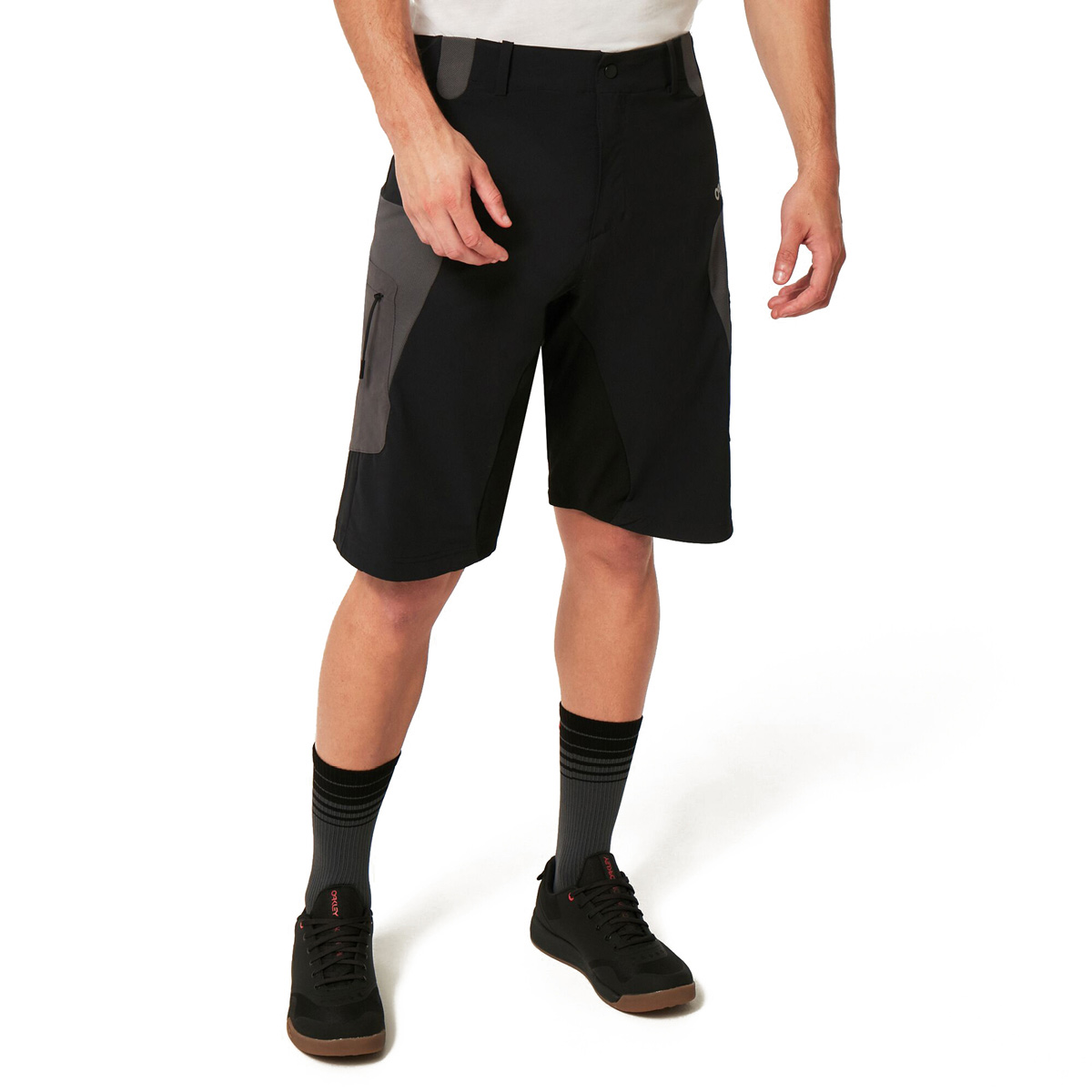 Die brandneue Maven MTB Cargo-Shorts aus wasserabweisendem 4-Wege Stretch-Material ist perfekt geeignet für viele Stunden auf dem Trail. Für sicheren Halt der Shorts sorgt der verdeckte Reverse Coil Zippverschluss, für höchsten Komfort das Stretch-Mesh-Material auf der Rückseite der Shorts, an der Taille und der Innenseite der Oberschenkel. Für bessere Sichtbarkeit in der Dunkelheit ist am rechten hinteren Bein ein reflektierendes Factory Pilot Logo sowie ein reflektierendes OAKLEY an der linken Tasche.