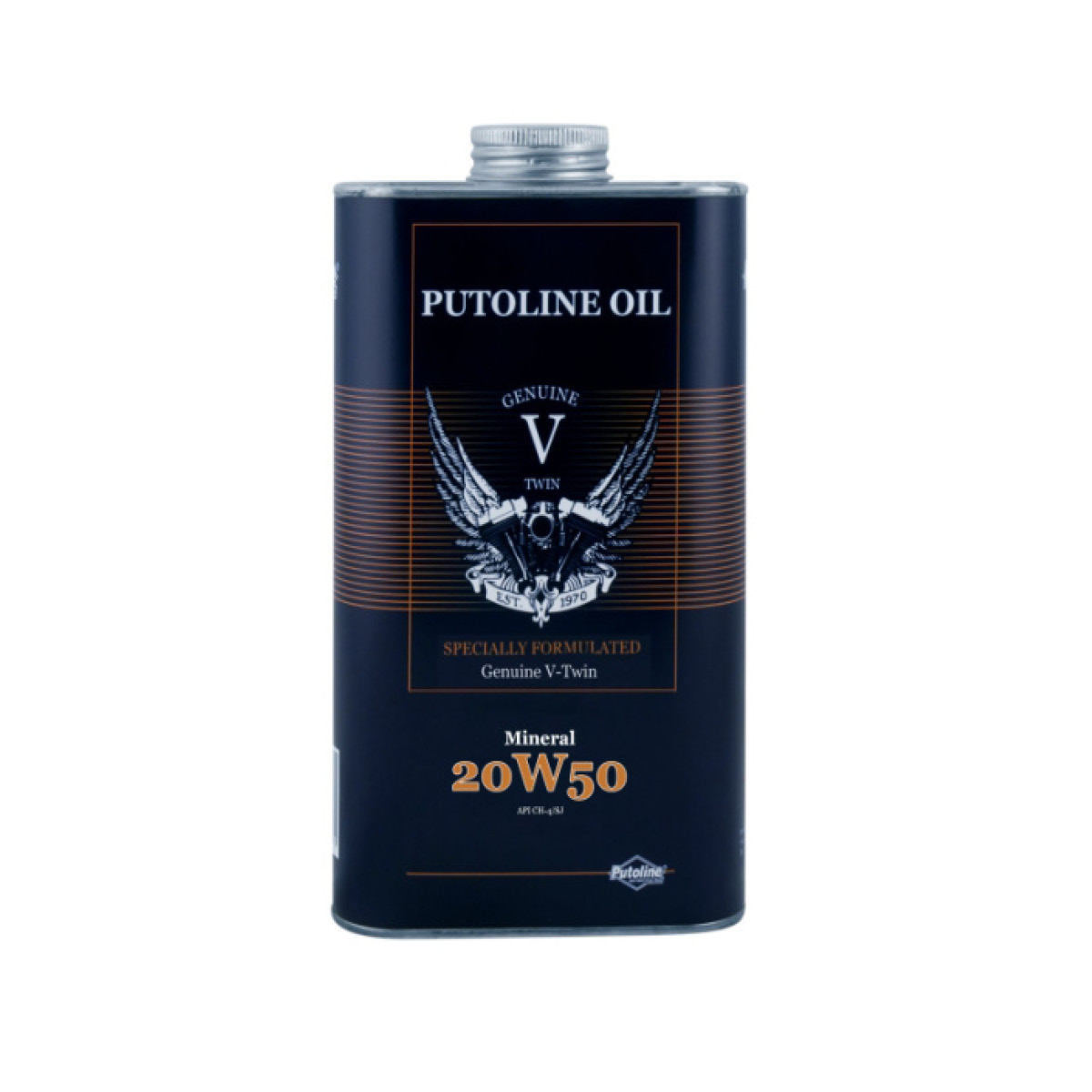 PUTOLINE GENUINE V-TWIN Mineral ein rein mineralisches Motoröl für Motorräder, das speziell für luft- und wassergekühlte V-Twin Motoren mit Trockenkupplung entwickelt wurde. Dank modernster Additivtechnologie werden folgende Eigenschaften erzielt: Äußerst niedriger Reibungskoeffizient, hervorragendes Kaltstartverhalten, niedriger Ölverbrauch. Dieses Öl eignet sich für verschiedenste V-Twin Motorräder mit kombinierter oder separater Schmierung von Motor, Getriebe und Kettenabtrieb, für die ein SAE 20W-50 Motoröl vorgeschrieben ist. Spezifikation: API CH-4/SJ
