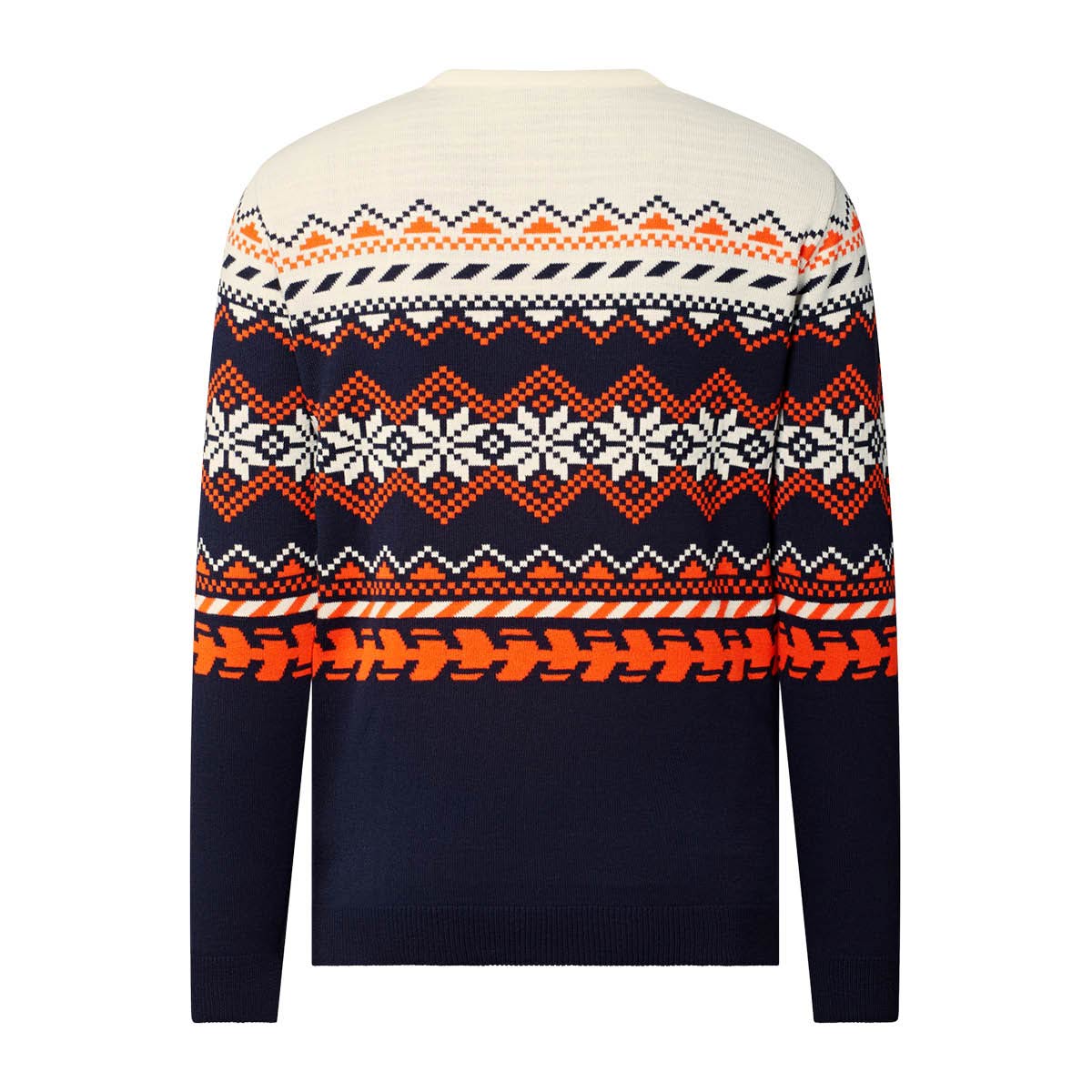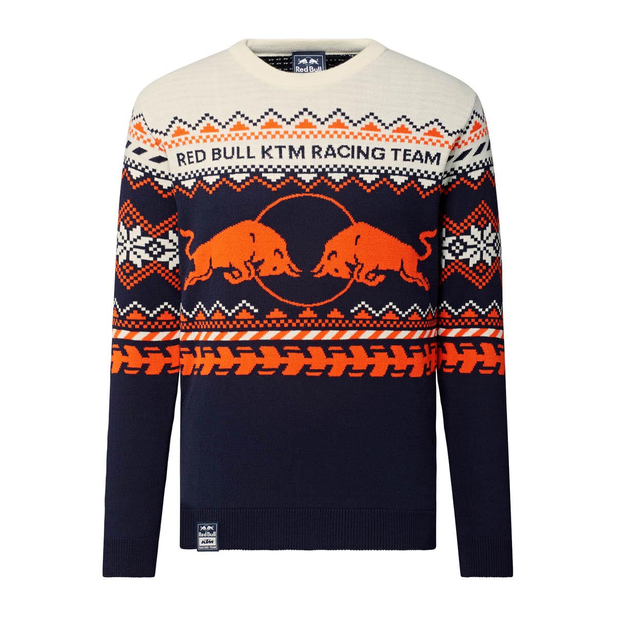 Hol dir den Renn-Style für den Winter mit dem Red Bull KTM Racing Team Winterpullover. In den Teamfarben gehalten, vereint er ein klassisches Muster mit aggressiven Reifenprofil-Details und markantem Branding – perfekt für den pit-Stop-Charme im Alltag. Auf der Brust prangt der Red Bull KTM Racing Team Schriftzug, ergänzt durch ein gewebtes Saum-Label und das Red Bull Logo. Das Fair-Isle-Muster in Teamfarben mit Reifenprofil-Details sorgt für einen cleveren, rasanten Look, während 100 % Acryl Wärme spendet und pflegeleicht ist.