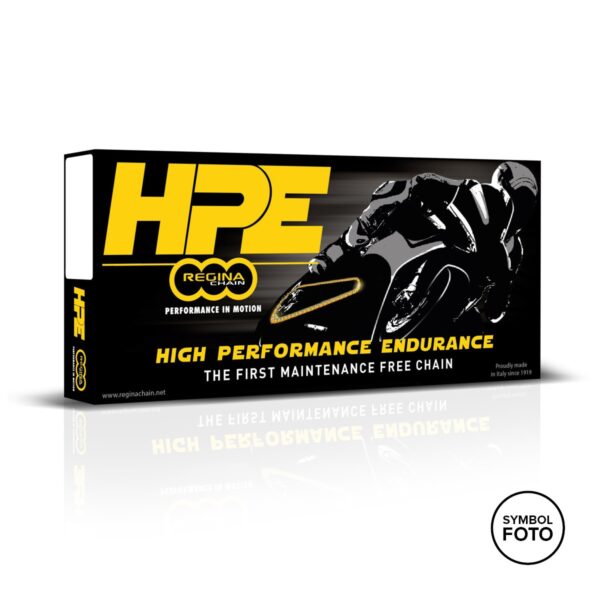 REGINA HPE Kette (wartungsfrei), die auf die Oberflächen der Buchsen und Rollen der HPE-Kette aufgetragene Beschichtung aus tetraedrischem amorphem Kohlenstoff (ta-C) gilt derzeit als die fortschrittlichste DLC-Beschichtung. Diese kombiniert hohe Härte mit einem niedrigem Reibungskoeffizienten und macht eine regelmäßige Nachschmierung überflüssig und verspricht gleichzeitig mindestens die gleiche Laufleistung wie mit einer normale Kette. Ein Kettenantrieb mit einer HPE-Kette erfordert keine Ta-C-beschichteten vorderen und hinteren Kettenräder.