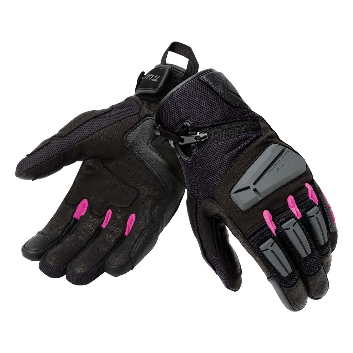 Die Sommerhandschuhe G-Four sind mit einem Außenmaterial aus hochfestem Mesh-Stretchgewebe und Lycra-Einsätzen ausgestattet. Das Innenfutter besteht aus Jersey Futter. Die T.UR Handschuhe bieten dank PU-Knöchel- und Handflächenseitenprotektoren sowie Lederverstärkungen an Finger und Handfläche einen hohen Sicherheitsstandard. Zusätzlich sind Antischock-Einsätze an den Fingern vorhanden. Der Klettverschluss am Ärmel sorgt für einen bequemen und individuellen Sitz. Besonders praktisch ist der Touchscreen-fähige Zeigefinger der Handschuhe. Die Sommerhandschuhe sind gemäß der EN 13594:2015 zertifiziert und bieten somit einen hohen Standard in Bezug auf Schutz und Sicherheit. Mit ihrem kurzen Profil sind die Handschuhe ideal für warme Wetterbedingungen geeignet.